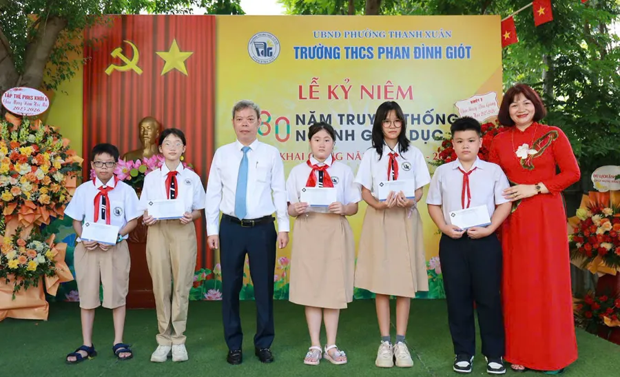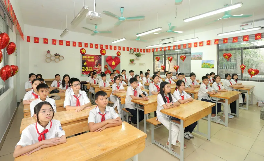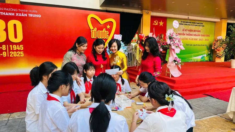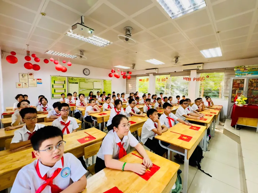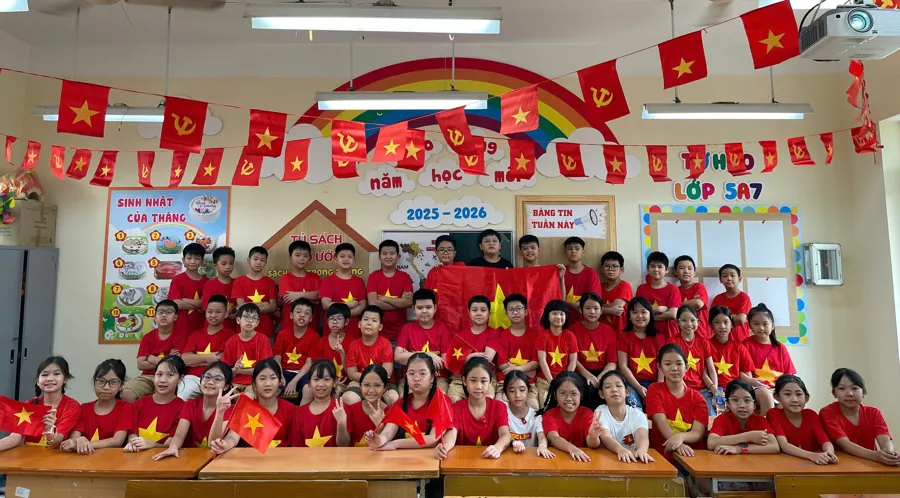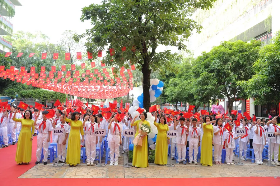 Kinhtedothi - Ngày 5/9, hòa chung niềm vui của hàng triệu học sinh trên cả nước trong ngày hội “Toàn dân đưa trẻ đến trường”, tại các trường học tại các phường Thanh Xuân, Khương Đình, Phương Liệt không khí hân hoan đón chào năm học mới lan tỏa khắp các lớp học, rực rỡ trong màu áo cờ đỏ sao vàng, sắc đỏ thiêng liêng của Quốc kỳ, của mùa thu Cách mạng...